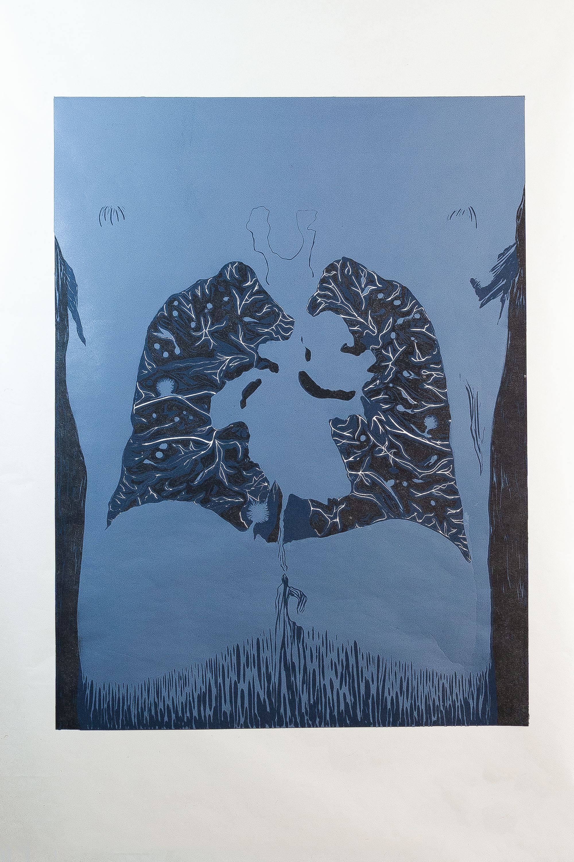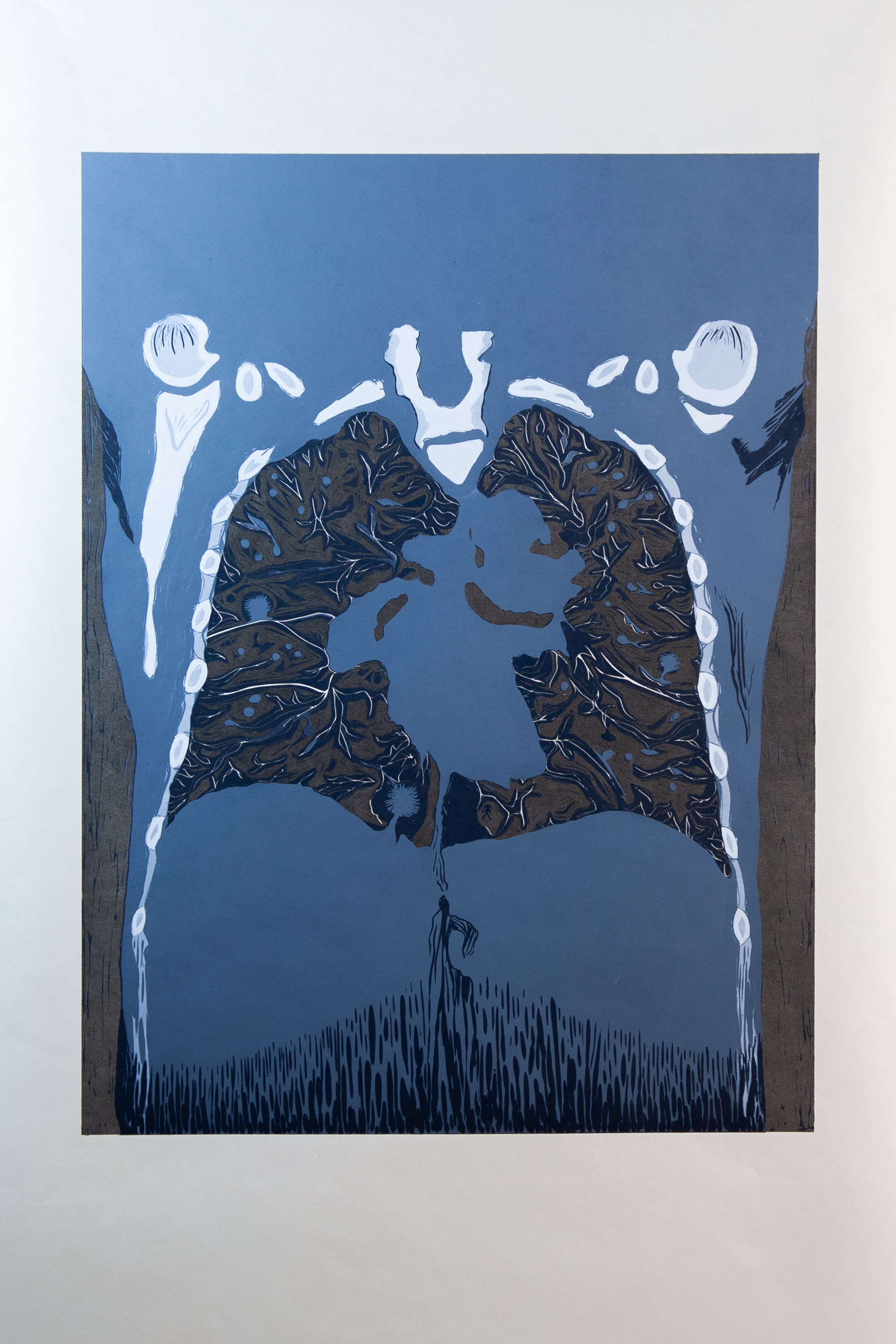 Reduction prints on Kitakata, 24x36” || Linoleum block, 18x24”